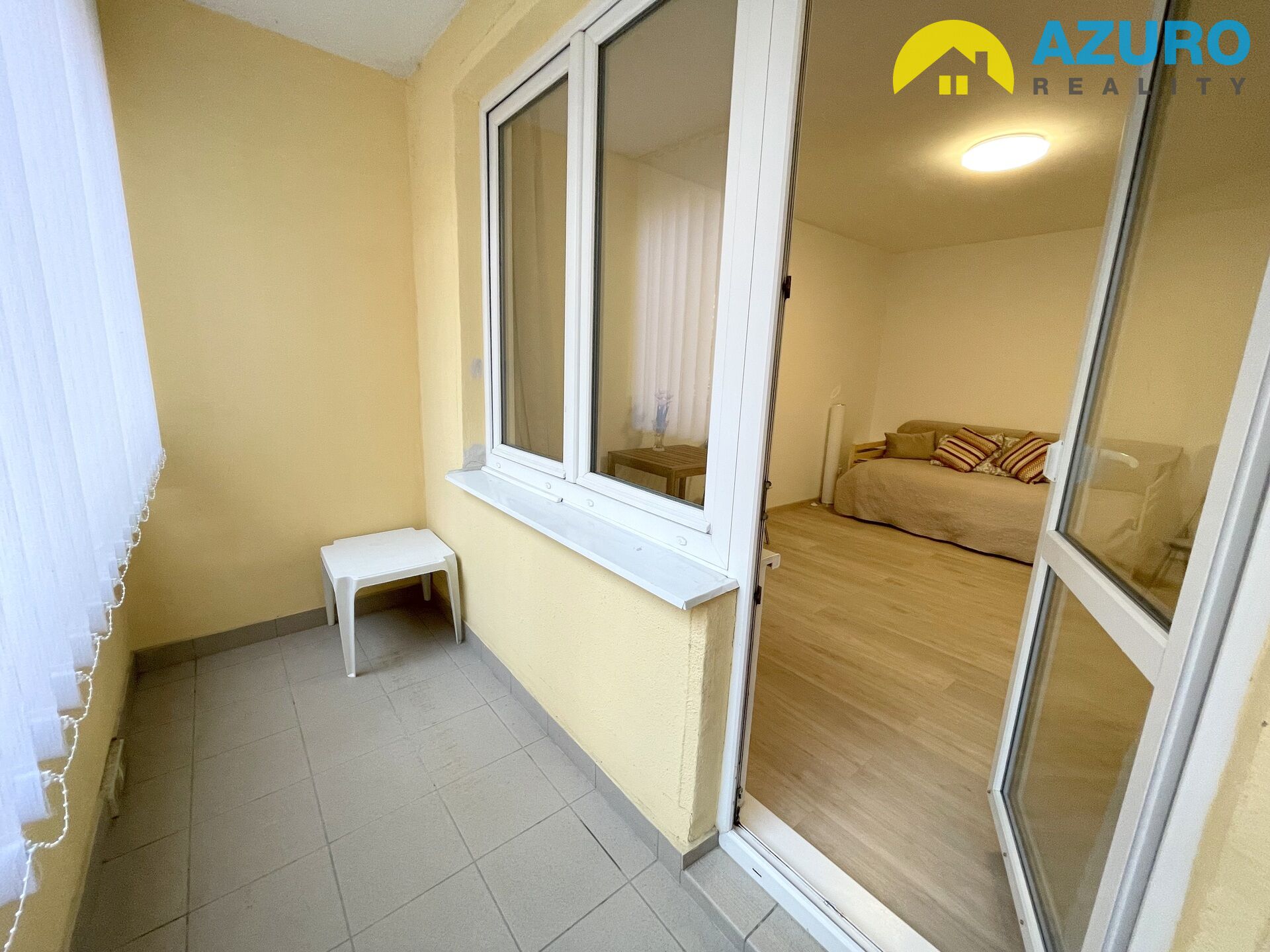 V bytě, rekonstruovaném v roce 2024, je k dispozici kuchyňská linka s vařičem, ve vyzděné koupelně sprchový kout, toaleta a přípojka k pračce. Z pokoje je vstup na prostornou lodžii, která je zasklená a vybavena vertikálními žaluziemi. K bytu náleží i sklepní kóje.
