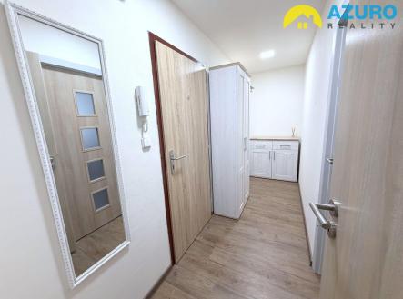 V bytě praktická kuchyňská linka s vestavěnými spotřebiči (indukční varná deska, el. trouba, digestoř) a lednicí s mrazákem, jídelní stůl se židlemi, ve zvětšené koupelně praktický sprchový kout, umyvadlo se skříňkou a pračka. Obývací pokoj je vybaven pohovkou, TV stolkem a komodou, v ložnici je šatní skříň, komoda a pracovní stůl se židlí, skříň a komoda jsou k dispozici i v předsíni. Podlahy vinyl / dlažba.