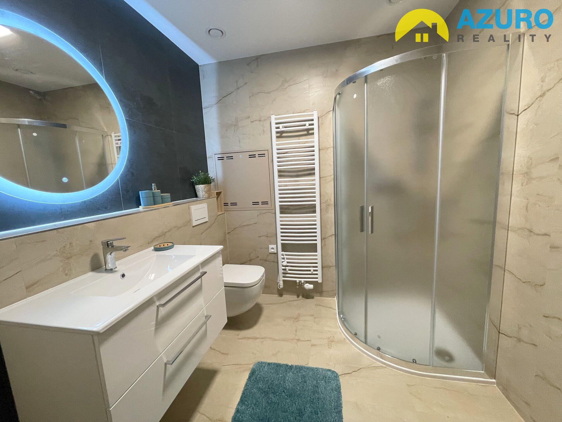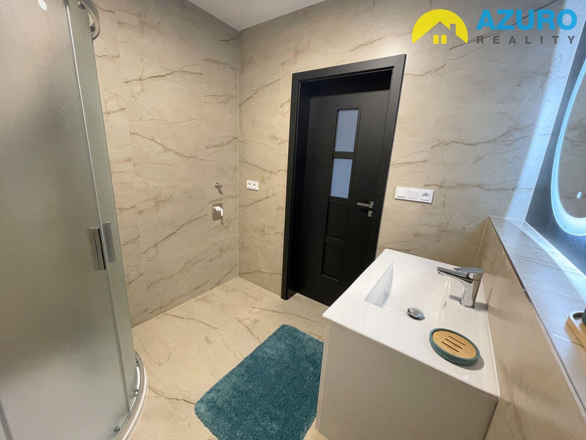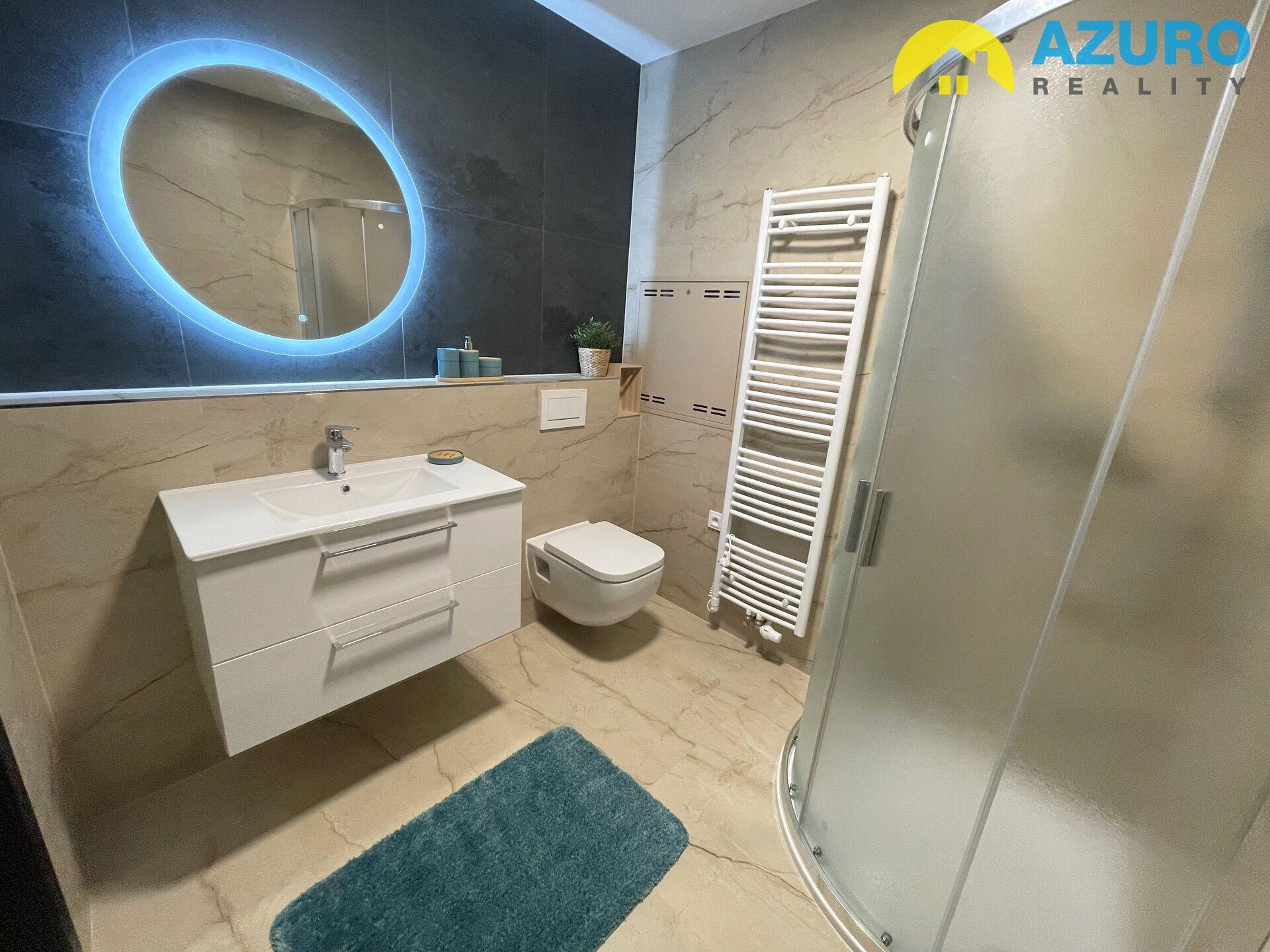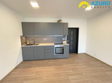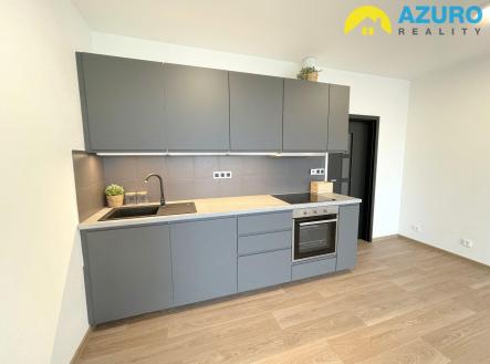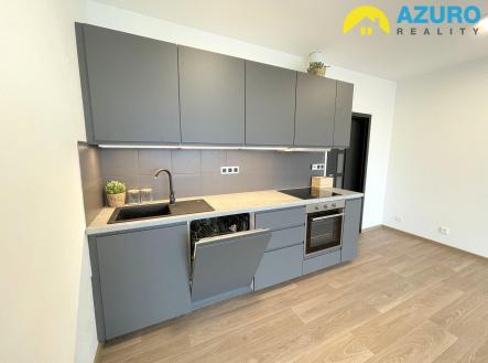 V bytě je k dispozici nadčasová kuchyňská linka s vestavěnými spotřebiči (indukční varná deska, el. trouba, myčka, digestoř), v koupelně je sprchový kout, umyvadlo a toaleta, i dostatek prostoru pro pračku.