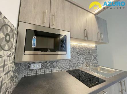 V bytové jednotce kuchyňská linka s vestavěnou mikrovlnnou troubou, malou lednicí a sklokeramickou varnou deskou, krásná koupelna se sprchovým koutem, umyvadlem se skříňkou a WC. Byt vybaven do detailu promyšlenou vestavbou s patrovou postelí s posuvnými schůdky a praktickými skříněmi.