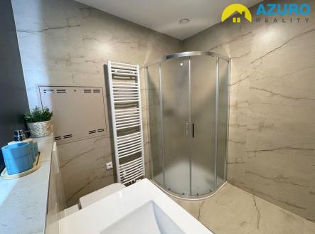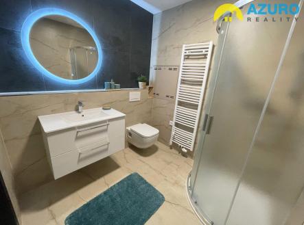 V bytě je k dispozici nadčasová kuchyňská linka s vestavěnými spotřebiči (indukční varná deska, el. trouba, myčka, digestoř), v koupelně je sprchový kout, umyvadlo a toaleta, i dostatek prostoru pro pračku.